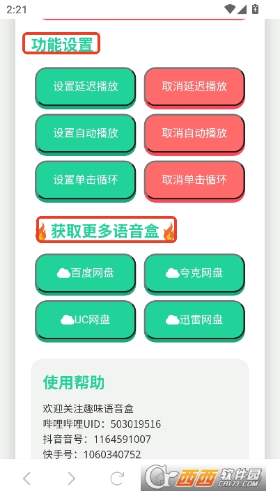 所有核心功能(语音播放、播放模式设置、社交分享)及附加资源(拓展语音库下载)均免费开放,无付费会员、单点付费等门槛,用户无需花费任何费用,就能完整畅享软件全部服务与资源,性价比极高。