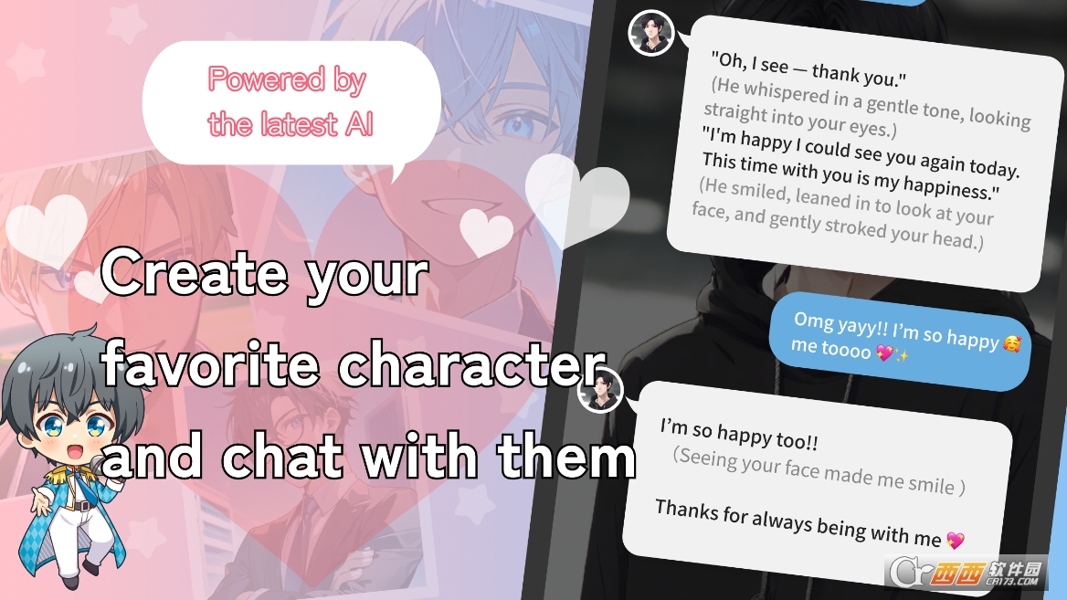 “私人专属对话,互动无限制” 是核心功能之一。没有固定的对话脚本,你可以和角色聊任何话题,比如分享今天的生活、讨论喜欢的电影、吐槽遇到的小麻烦。AI 会根据你的话题灵活回应,还能记住你们之前聊过的内容,下次对话时会自然衔接,就像真的有个懂你的伙伴在陪你聊天。