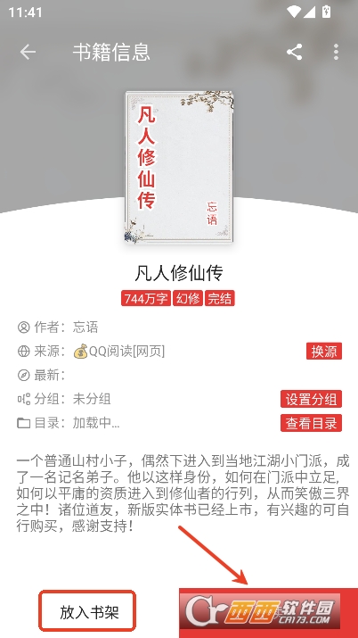 3,点击感兴趣的书籍就能选章在线阅读与加入书架收藏