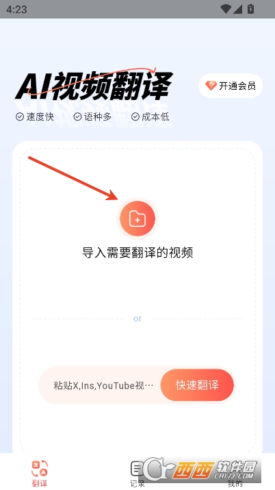 1,进入首页后可以上传本地视频或者输入链接进行翻译