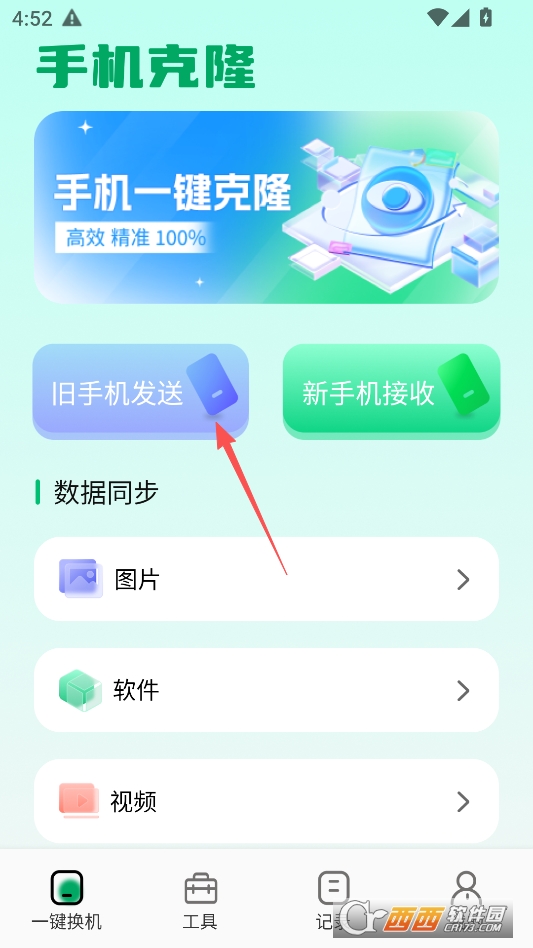 进入软件主页点击上方的旧手机发送功能