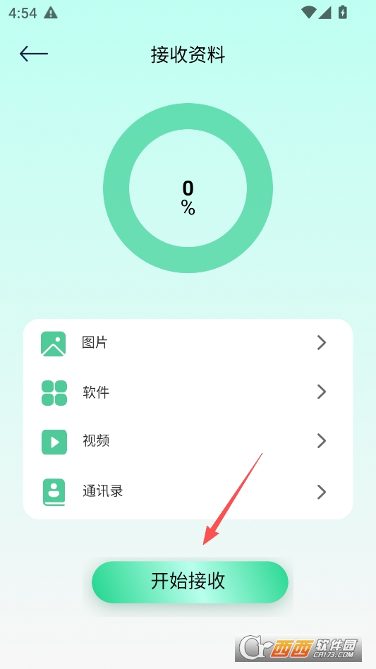 然后再在另一个手机上点击主页的新手机接收,点击开始接收