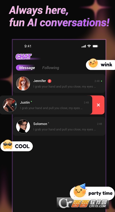 CupidAI女友安卓版是一款主打沉浸式对话互动的AI聊天软件,内置海量的官方原创AI角色模型选择,每个角色都有自己独特的人物形象,个性标签与背景设定,点击角色就能将其添加至角色库进行聊天,不仅能够根据对话内容提供智能的精准回复,还会根据对话进度解锁更多的人物形象与剧情,更能创建专属的自定义个性化角色,满足不同用户的聊天需求。