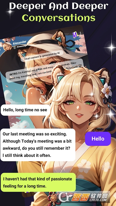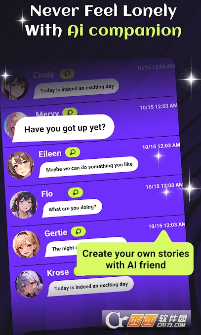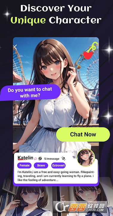 提供多版本AI角色,不同性格、天赋与对话风格可选,满足多样化互动需求。例如勇敢外向的Katelin擅长分享冒险经历,温柔内敛的角色适合情感倾听,用户可根据当下心情或需求切换交流对象。