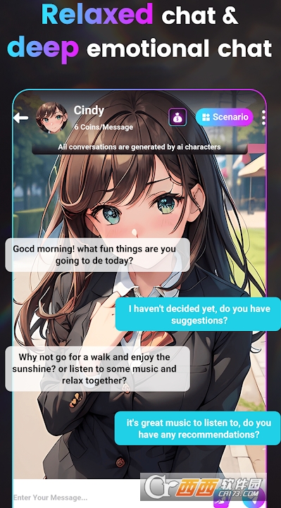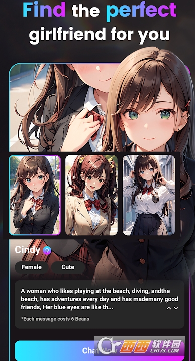 Q:使用软件内部分AI角色聊天时,会产生额外消耗吗?A:会。部分AI角色聊天需消耗“Beans”,例如内置角色Cindy,每条发送的消息需扣除6Beans,具体消耗规则可在对应角色的聊天入口处查看提示。