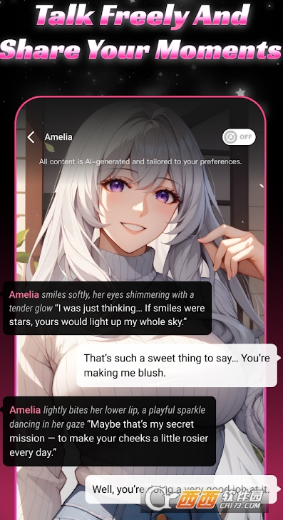 多元且立体的AI人设:汇聚甜美闺蜜、浪漫梦想家、内省思考者、开朗乐天派等多种人设,每个角色不仅有清晰的性格标签,还配备完整独立的背景故事,互动过程中还能解锁隐藏的人物经历与小习惯,让角色形象更丰满立体,避免人设单薄。