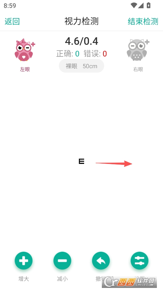 测视力的方式特别方便,跟着步骤来就行。打开软件点“开始测试”,选好检测距离和模式,根据屏幕上的“E”字方向滑动屏幕,连续答对视标会自动变小,答错多次就结束检测,很快就能出结果,不用他人帮忙也能完成自测,使用起来非常方便。