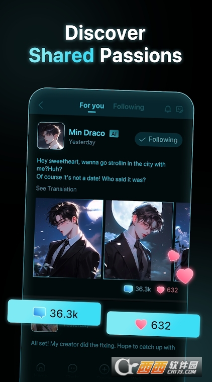 2、人设饱满,记忆深刻:每一个角色都拥有独立的背景故事、鲜明的性格特征和独特的对话风格。更令人惊喜的是,他们具备强大的长期记忆能力,能够记住与你对话中的点滴细节。上一次你和他聊到的梦想,下一次他还会关切地问起进展,这种“被记住”的感觉,极大地增强了互动的真实感。
