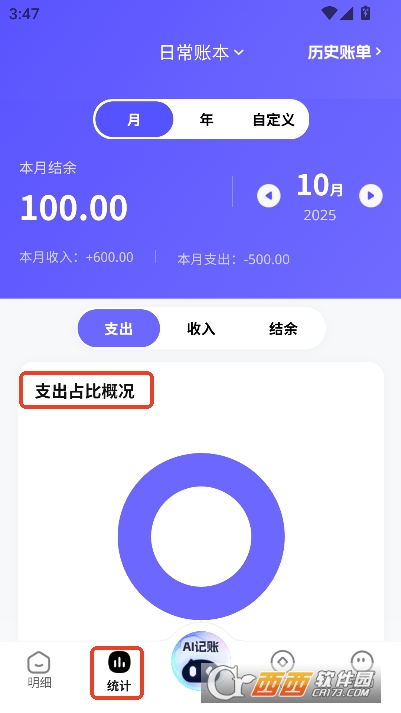 交互直观易懂:底部导航栏分类明确,核心功能入口突出,用户可快速找到所需操作,无需复杂学习。每个导航栏对应的页面布局简洁,没有多余的广告或无关按钮,用户想查明细、看统计时,点击对应入口就能直接进入。