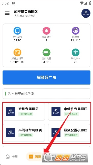 2、而在【画质】界面中我们能看到这里可进行多种处理器,分辨率等不同设备类型的画质优化功能