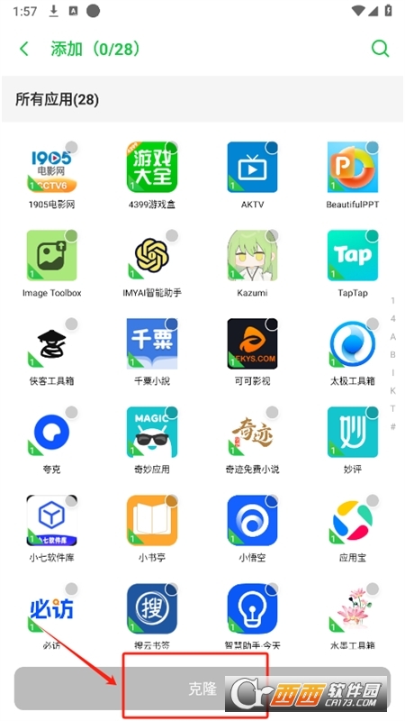 开始扫描获得你手机中的所有应用,选择你想要克隆的应用,选中并克隆即可
