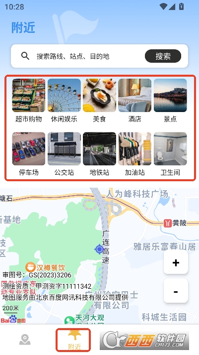 浮光旅迹app手机版客户端是一款便捷实用的多功能路线导航服务工具,能够为用户提供实时刷新的精准定位信息,提供附近的超市购物,休闲娱乐,美食酒店,特色景点等分类推荐,还能通过输入目的地查看路线推荐,包含驾车,公交,骑行,步行四种方式,还能提供详细的语音路线导航服务,满足不同用户的出行需求。