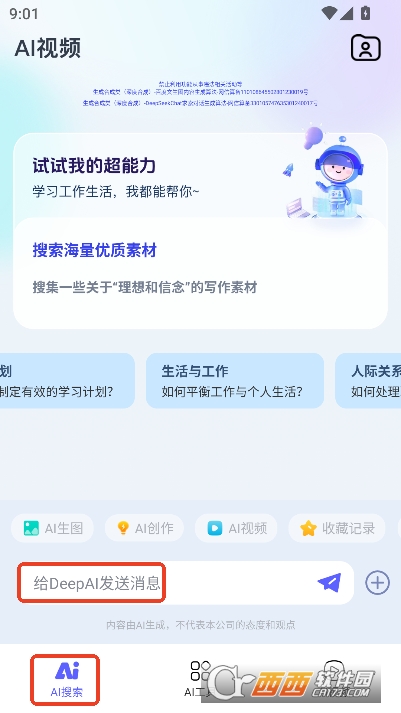 多模态AI创作集成:深度整合文生视频、AI绘画、智能搜问等核心功能,支持从文字描述生成电影级镜头语言的视频、多风格自定义绘画作品,并接入DeepSeek-R1大模型提供精准问答与翻译,实现一站式AI创作体验。