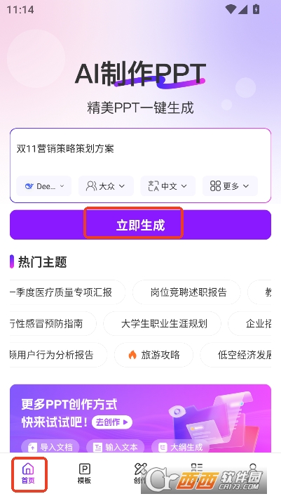 AI制作PPT作为一款专注于演示文稿的创作辅助工具,能精准切中用户在PPT制作中的核心痛点,为不同场景下的创作需求提供高效解决方案。无论是职场人赶制商务汇报、教师设计教学课件,还是学生准备毕业答辩,都能借助它大幅降低创作门槛。用户只需输入主题、文本或导入文档,软件便会结合所选场景与受众,自动生成逻辑清晰、风格适配的PPT框架。同时,工具兼顾灵活性与专业性,提供多类场景模板、多AI模型选择及个性化编辑功能,既满足快速出稿的效率需求,也能通过细节调整适配差异化审美。无广告干扰的界面与清晰的功能分区,进一步优化使用体验,成为提升创作效率、保障输出质量的实用助手。
