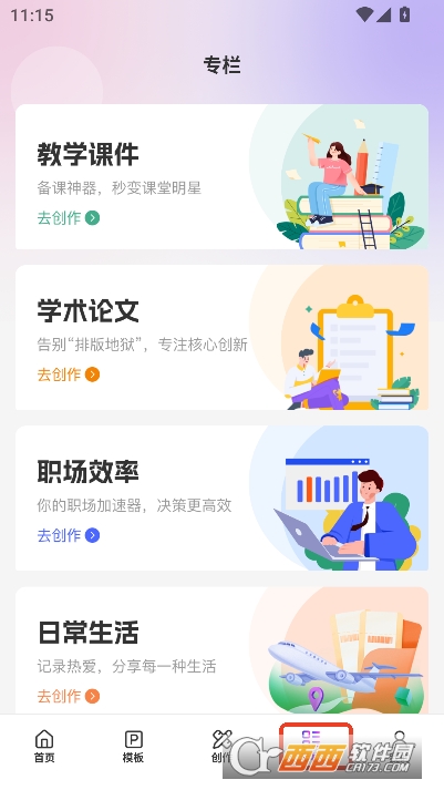无干扰使用环境:全程无广告弹窗打断操作,避免用户在创作过程中被无关信息干扰;界面按首页 - 模板 - 创作 - 专栏 - 我的清晰分类,功能入口直观,操作路径短,无需反复查找,显著提升使用效率。