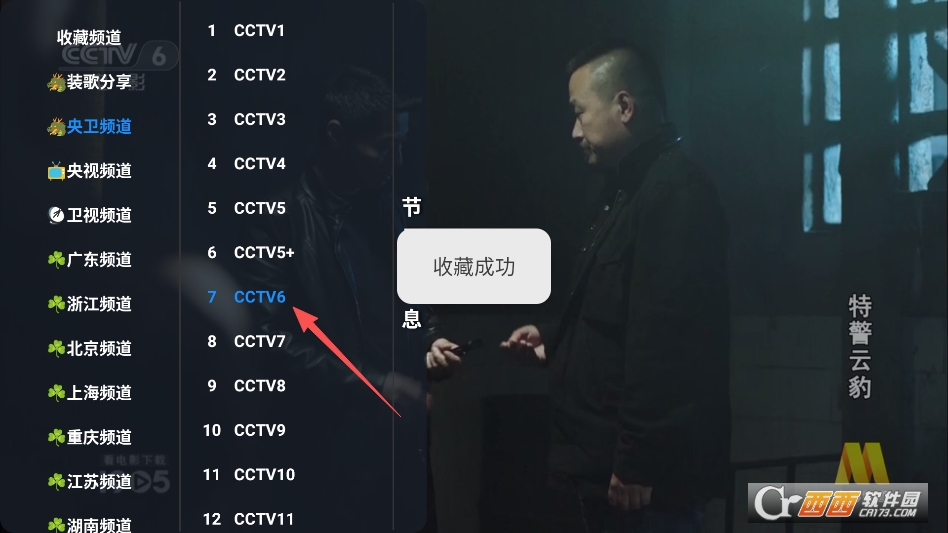 呼出频道列表后长按你喜欢的频道即可进行收藏