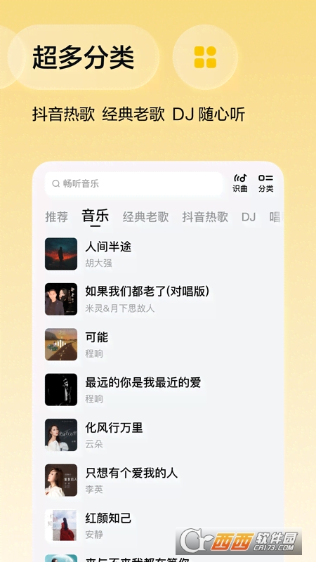 超多种类的分类,各种抖音神曲、DJ音乐应有尽有