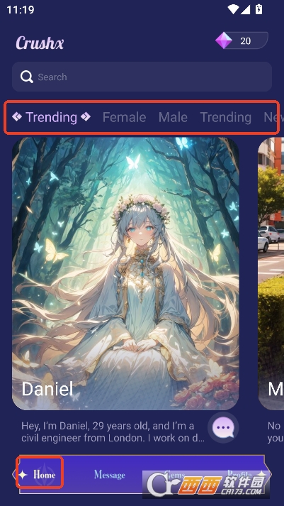 CrushXAI伴侣官方中文版是一款沉浸式互动对话软件,软件内置了丰富的虚拟AI角色选择,可通过不同的性格标签,人物特点,背景设定进行筛选查找,点击角色就能进入互动页面,支持自定义文本或者语音进行对话聊天,还能修改人物设定,称呼方式,AI模型选择,为用户提供全天候的情感陪伴互动。