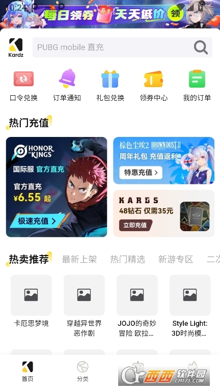 Kardz代充平台2026最新版是一款优秀的官方代充平台软件,支持针对海外游戏进行代充服务,提供详细的资金充值,涵盖了丰富的游戏资源,包括最新上架、热门精选、新游专区、二次元专区等等,非常实用,资金安全有保障,有需要的就来下载试试吧。