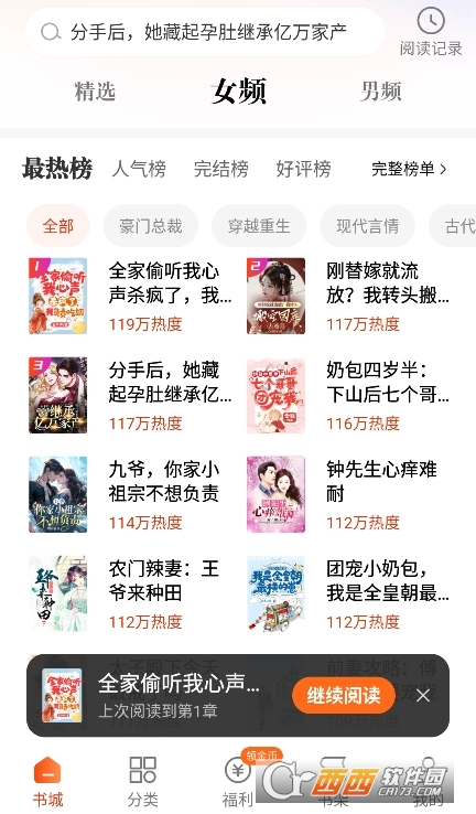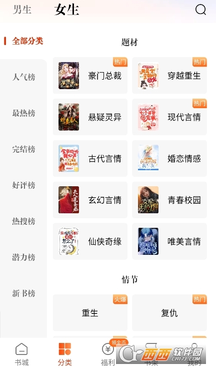 2、女频言情:霸道总裁、穿越宫斗、甜宠爽文,触动您的浪漫心弦。