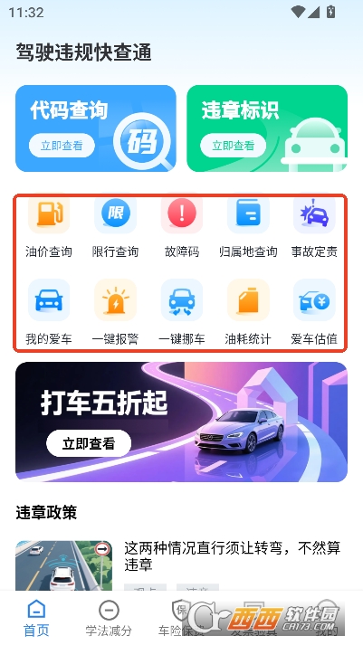 功能跨界融合,相比单一工具类APP,无需切换即可满足多维度车务需求。市面上多数车务APP 仅聚焦单一功能,而该APP实现了违章处理、学法减分、车务计算等功能的深度融合,既减少了手机内存占用,又避免了频繁切换应用的繁琐操作,使用体验更连贯。