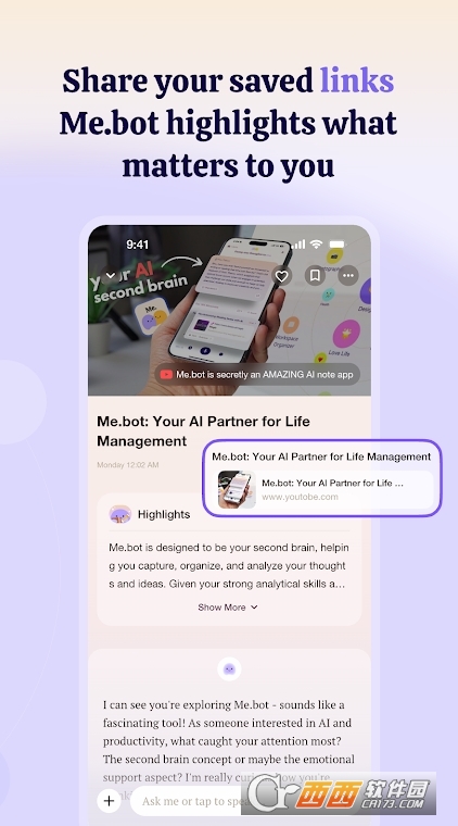 Second Me ai软件安卓最新版是ai日常安排软件,提供专业的信息整理和协同功能,为用户们提供优质ai社交体验,支持小伙伴们获得详细且丰富的社交平台,开阔自己的社交圈子,提供精彩的设计体验,感兴趣的小伙伴们欢迎来下载试试吧。