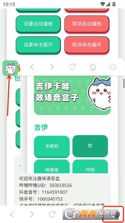 吉伊卡哇语音盒官方最新版是一款以吉伊卡哇为主题的趣味主题语音盒子,内置海量的吉伊、乌萨奇、小八、罗小黑与飞鼠的语音内容,点击就能在线试听预览,还能获取丰富的音乐歌曲。支持延迟播放,自动播放以及单机循环,还能开启悬浮窗发送语音达到变声的效果,内置详细的图文变声教程,满足不同用户的使用需求。