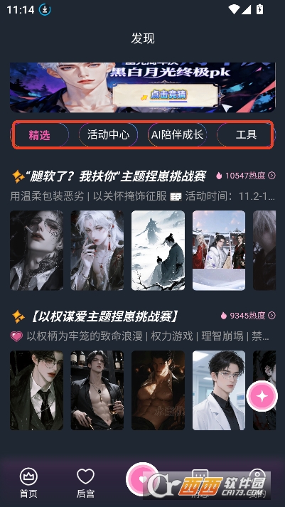 幽光AI伴侣官方最新版是一款主打陪伴式互动的AI聊天软件,内置丰富的AI角色模型选择,每个角色都拥有专属的个性特点,性格标签以及背景设定,还内置了多样化的精选专题推荐,点击角色就能与其展开自由对话进行实时互动,还能将喜欢的角色加入后宫进行分类管理,为用户带来充满沉浸感的情感陪伴。