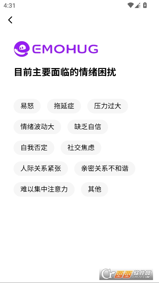 进入软件注册登录成功后选择你目前面临的各种情绪困扰
