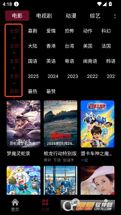 2,可通过题材语言,地区评分等条件进行筛选
