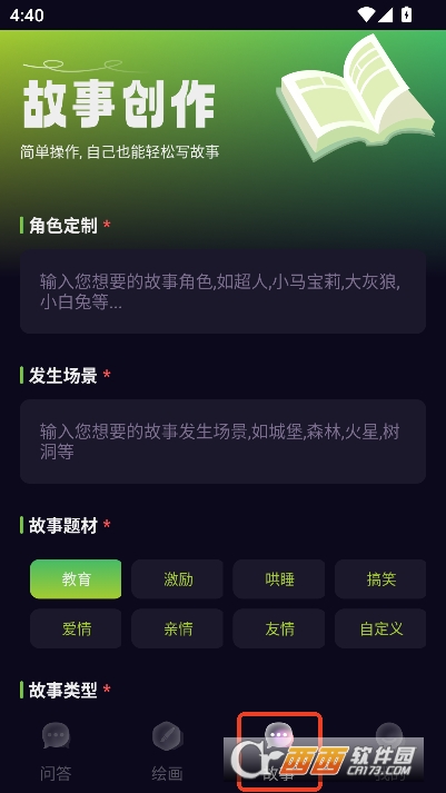 4,还能通过自定义角色场景,题材类型的方式生成故事内容