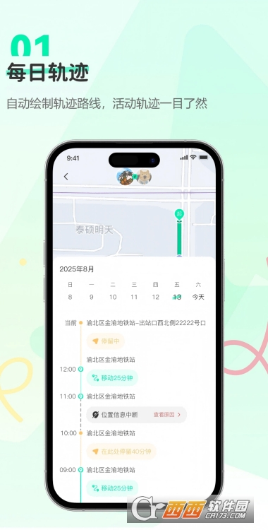 全天候追踪Ta的行程足迹和出行方式,速度与停留时间尽在掌握,可查询近7天记录,让关心和守护时刻在线~