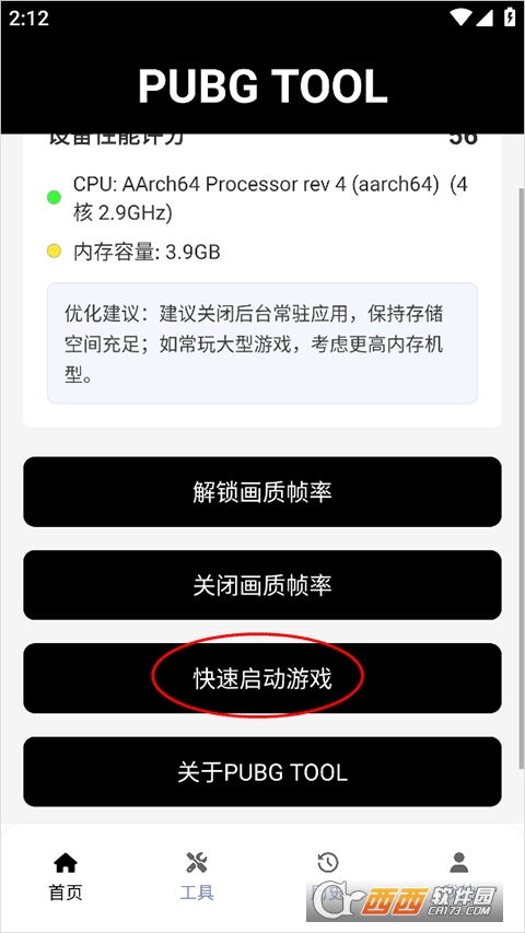 4、选择好帧率后,点击首页的快速启动游戏