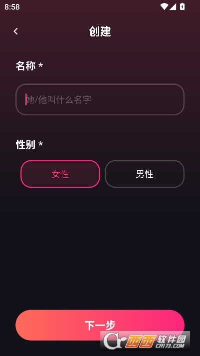 打开软件登录后,点击主界面右下角的 “+” 号或 “创建新角色” 选项,进入角色创建页面。先填写核心基础信息,包括角色名称、性别、年龄、职业,再选择角色类型(如女友、朋友、导师等),完成后点击 “下一步” 进入细节设置阶段,基础信息是角色的核心标识,建议简洁明确。