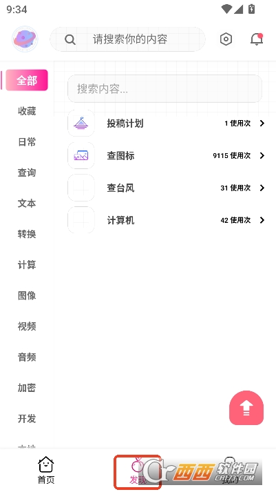 功能分类清晰,首页聚焦核心常用工具,发现页拓展更多细分功能,搭配顶部放大镜搜索功能,输入关键词即可快速匹配相关工具,无需在众多功能中逐一查找,大幅缩短操作路径,提升使用效率。