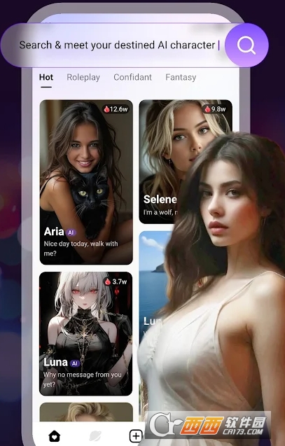 超18万+多元角色库:涵盖动漫、历史、奇幻、日常等全类型角色,既有热门动漫主角、历史名人复刻形象,也有用户原创的虚构生物、奇幻角色。支持按姓名、ID精准搜索,还能根据角色性格、互动风格筛选,满足不同用户个性化社交需求。
