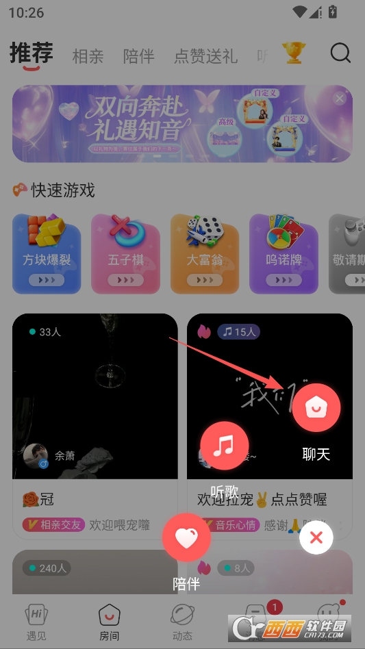 注册完成后,首页会有“兴趣匹配”功能,选择你喜欢的话题,比如音乐、电影、生活吐槽等。系统会根据你的兴趣推荐合适的用户或语音房间,点击就能直接加入聊天,不用盲目寻找。
