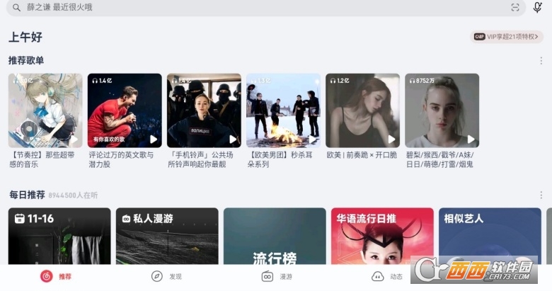 2、在线音乐探索:在“发现”或“音乐馆”板块,可以浏览各类榜单、新歌和精选歌单,在线播放或收藏喜欢的歌曲。