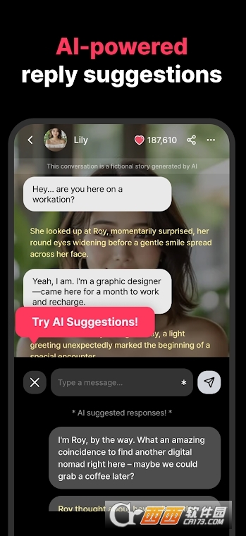 ReelTalk超越了纯文本交互的局限,采用了先进的多模态AI技术。在你与角色进行精彩对话的关键节点,软件会基于聊天的内容和情境,实时生成一张张宛如真实剧照的高清图像。当你对角色说出深情告白时,屏幕上可能会浮现出对方感动落泪的特写;当你做出一个重大决定时,一张渲染着紧张氛围的场景图会随之出现。这种“文生图”的能力,将抽象的文字对话转化为具象的视觉冲击,极大地增强了故事的沉浸感和情感张力。