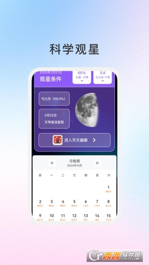 3、空气质量监测:实时更新PM2.5、花粉浓度等环境数据,特别适合户外观测准备