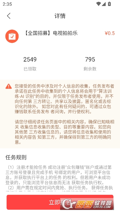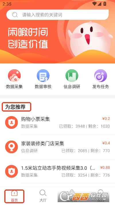 众包赚app是一款专为有闲暇时间的用户打造的高效兼职赚钱平台,以简单操作、丰厚收益、灵活自由为核心亮点,成为学生、白领、宝妈等群体的兼职优选。平台内含海量长期任务,覆盖数据采集、数据审核、信息调研等多元类型,既有线上判断图片相似、参与市场调研的轻量任务,也有线下广告投放检查、实地信息采集的实操任务,满足不同场景下的赚钱需求。软件支持全国范围内接单,不受地域限制,内置精准任务筛选与搜索功能,可按地区、类型快速匹配优质任务。同时配备地理位置签到、现场照片上传等监督功能,结合支付宝实名认证机制,既保障任务执行质量,也守护用户资金与信息安全。