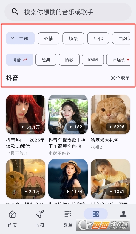 2、点击查看不同类型的歌单资源