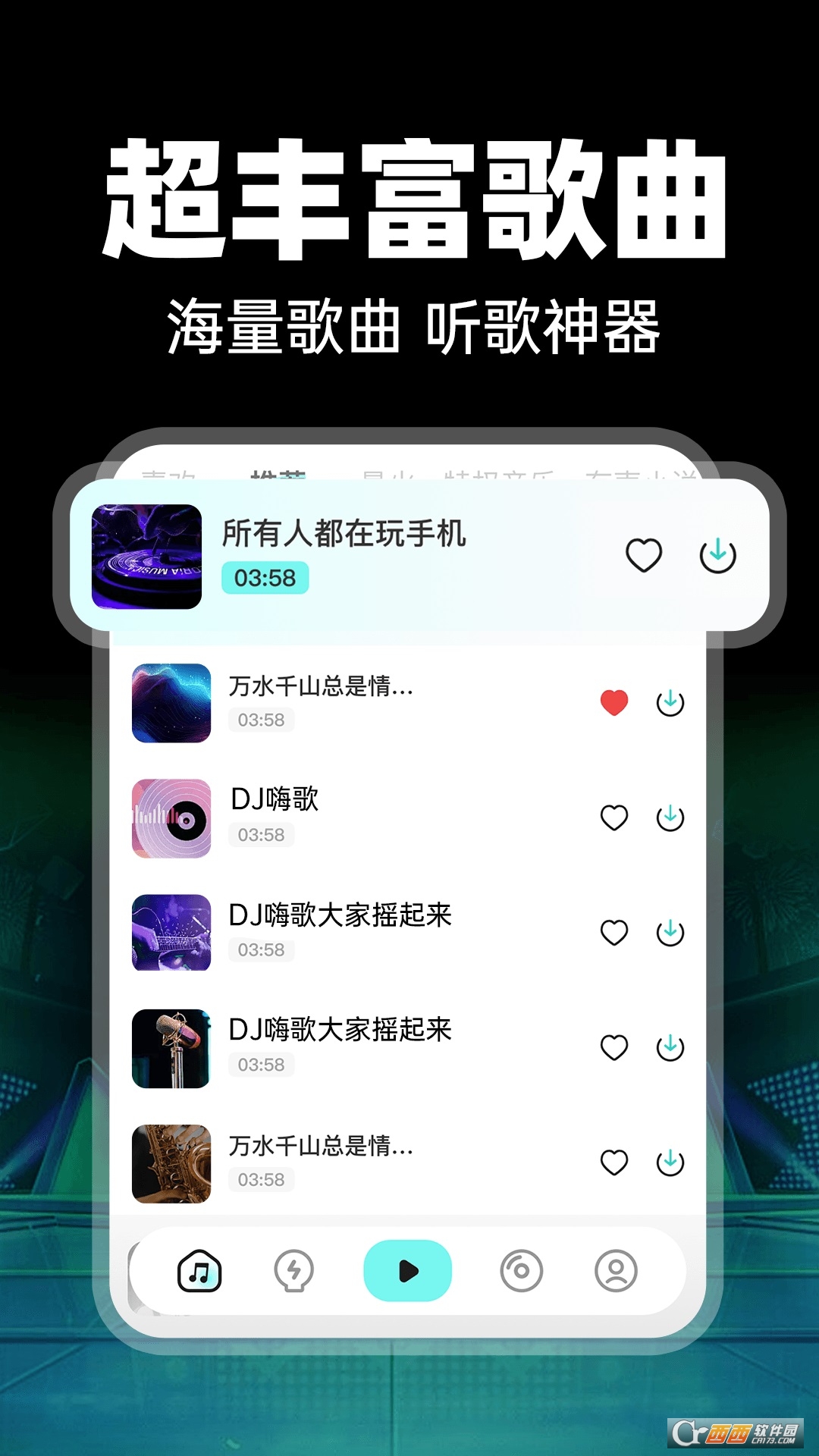 智能推荐超懂你,根据你的听歌记录自动生成专属歌单。1.你常听怀旧DJ,就给你推八零九零经典串烧。2.你爱听炸场热曲,首页全是当下最火的蹦迪神曲,懒人听歌超省心。