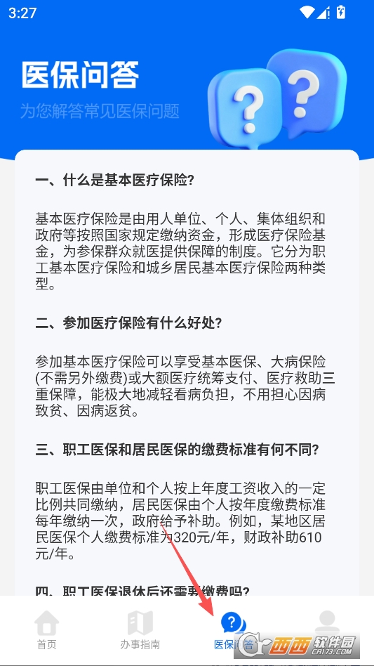 点击医保问答,可以回答给大家最关心的医保相关的问题
