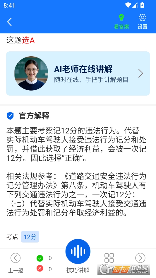 文化水平不高的长辈也能用,支持语音听题功能,题目和解析都会自动朗读,不用盯着屏幕看文字,轻松就能学交规。