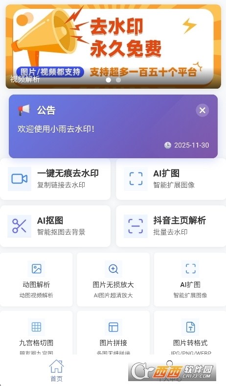 在内容创作全民化的数字时代,各类水印和版权标识常常成为创意重用的障碍。小雨去水印工具箱App安卓版应运而生,它不仅仅是一个简单的水印去除工具,更是一个集成了十余种实用功能的移动端多媒体处理工作站。这款应用将专业的图像视频处理技术封装成简单易用的操作界面,让每个智能手机用户都能成为内容编辑的能手。