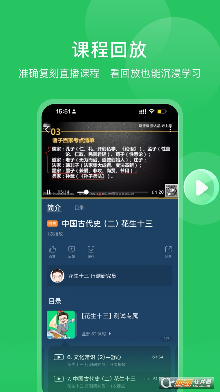 提供丰富的课程资源,既有花生十三领衔的名师直播课,能实时互动答疑;也有精心录制的点播课,方便考生根据自己的进度反复观看。
