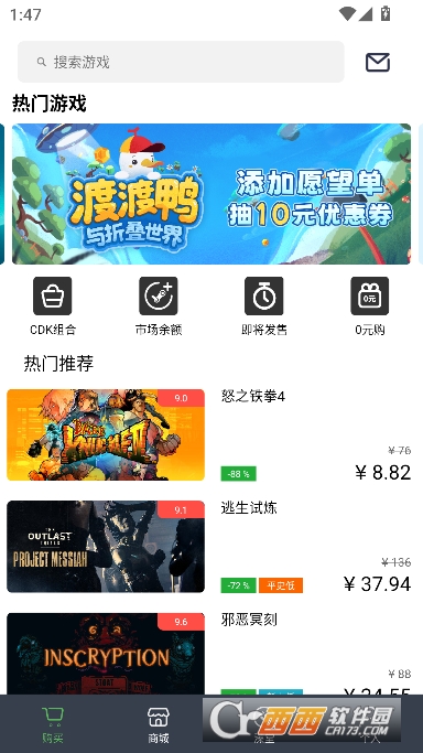 SteamPY官方正式版是一款转为steam玩家打造的游戏社区资源交易平台,每日上新热门新游推荐与折扣游戏信息,支持游戏名称关键词快速搜索直达,通过平台就能快速购买感兴趣的steam游戏,同时还支持用户将自己的游戏CDK通过平台进行出售,赚取收益,满足不同用户的使用需求。