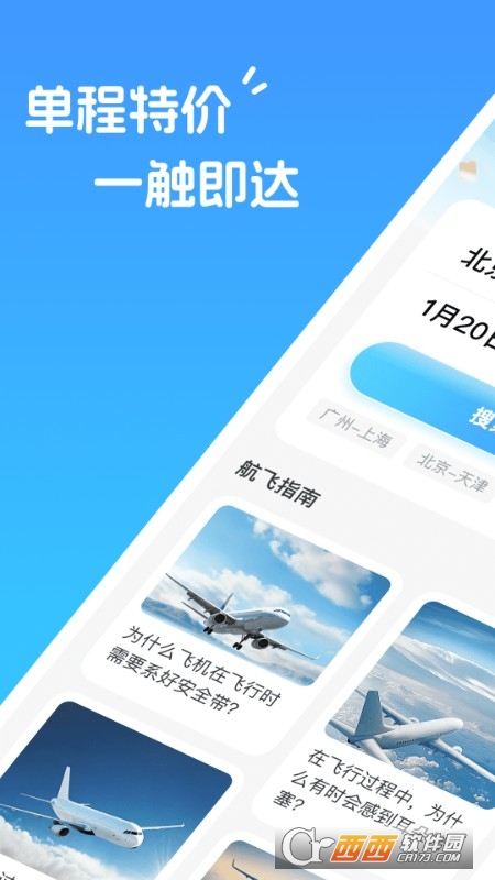 1. 单程特价机票查询,整合多渠道机票资源,一键就能筛选出符合需求的特价选项,不用反复比价。