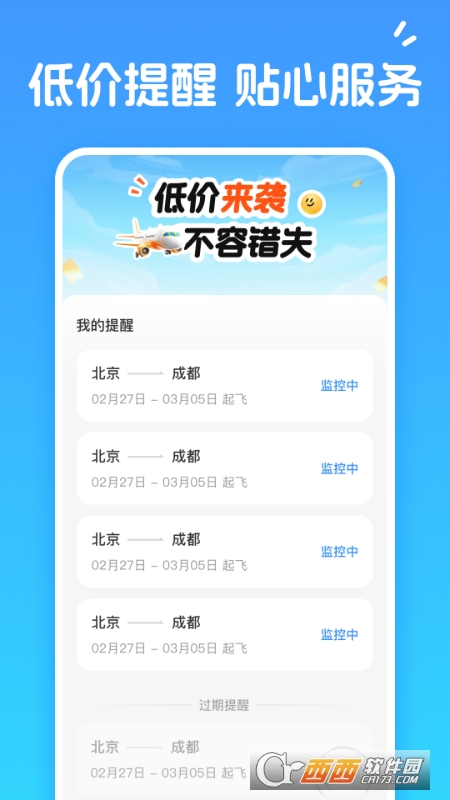 4. 机票低价提醒服务,设置好目标航线和预算后,价格下降时会及时通知,帮你精准把握最佳购票时机。
